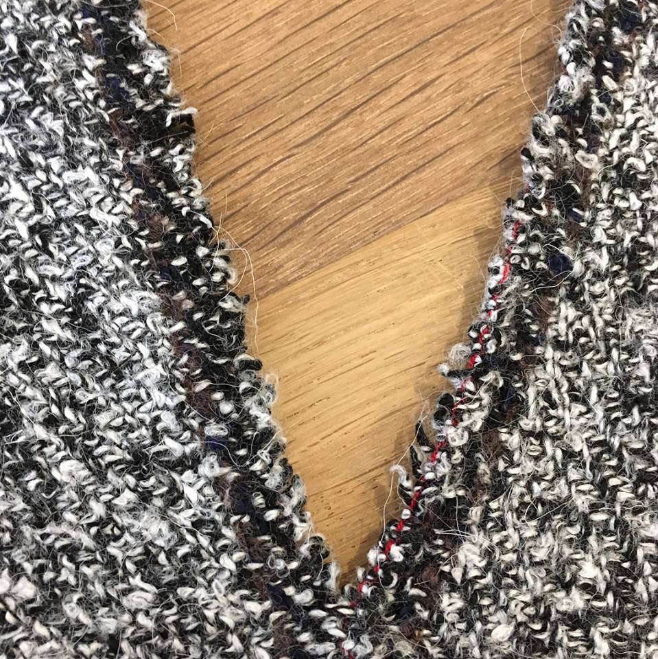 Minimal+exaggerated crop in s+p wool, laying over original prototype of hand woven cotton. Cozy layering piece.