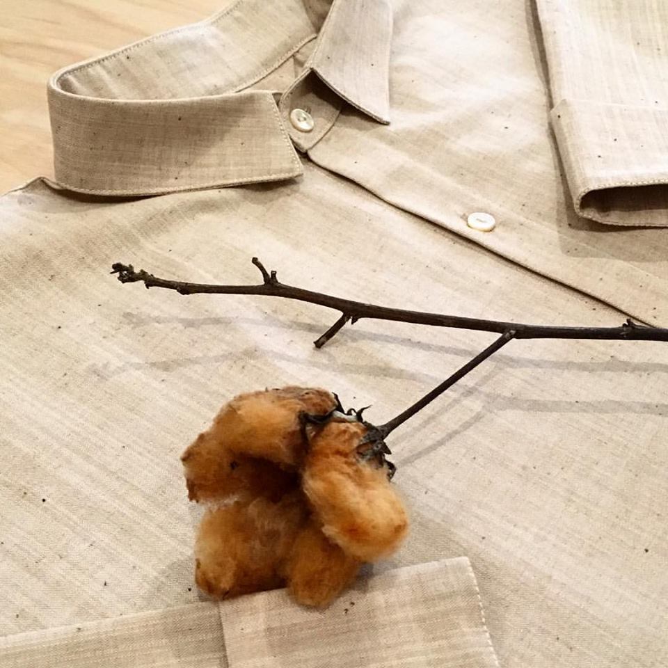 Organic natural brown cotton cultivated by Sally Fox in Capay Valley, CA. Spun, woven and eco-finished in Japan.